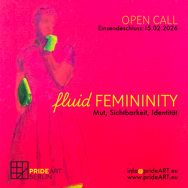 Weiblichkeit ist keine Kategorie – sie ist Bewegung. Sie ist Gefühl, Widerstand, Verwandlung. Für die Oster-Ausstellung 2026 sucht prideART Berlin e.V. Künstlerinnen, Künstler und queere Kreative, die sich mit den unzähligen Formen, Facetten und Ausdrucksweisen von Weiblichkeit auseinandersetzen.