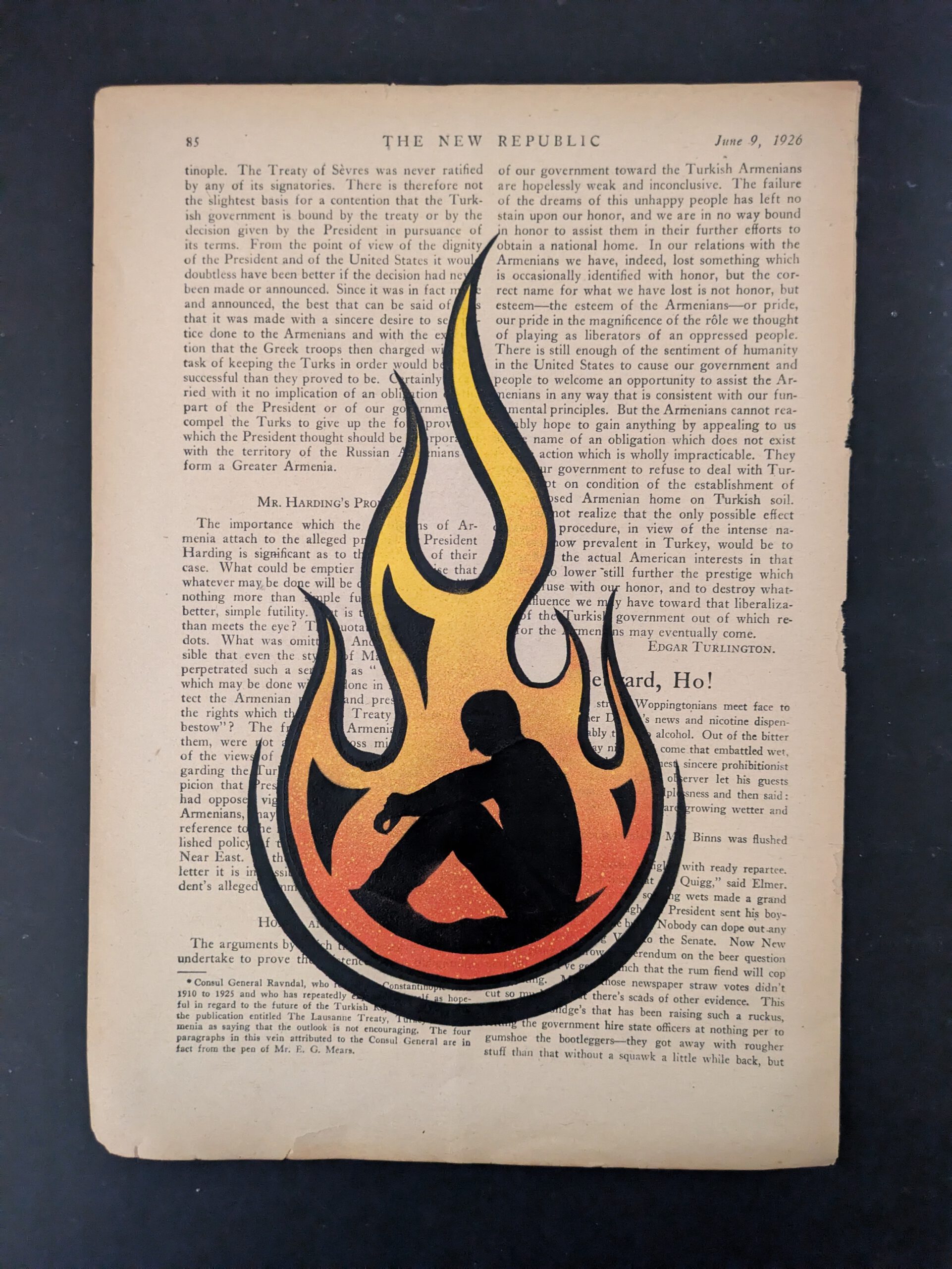Painting / 2025 / Stencil Spray Acrylic ON A Newspaper From 1926 / 40 x 30 x 1 cm