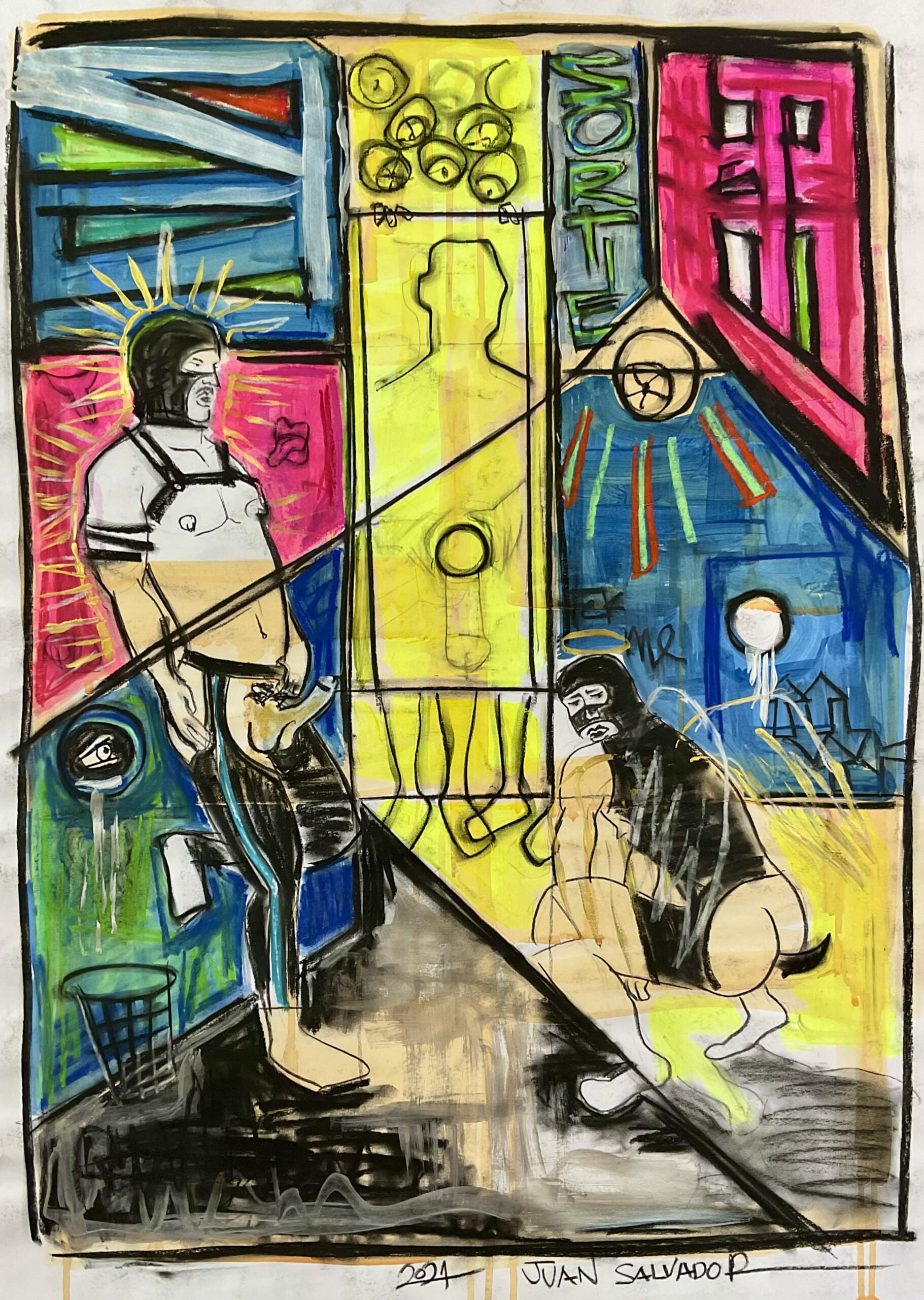 Acryl und Pastellkreide auf Papier.
