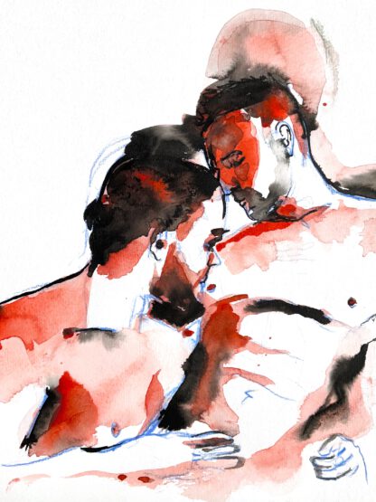 Verkauft von: Martin DieudonnéTwo men kissing. The intensity of it is shown by the bright red, color of love, agressivity and blood.