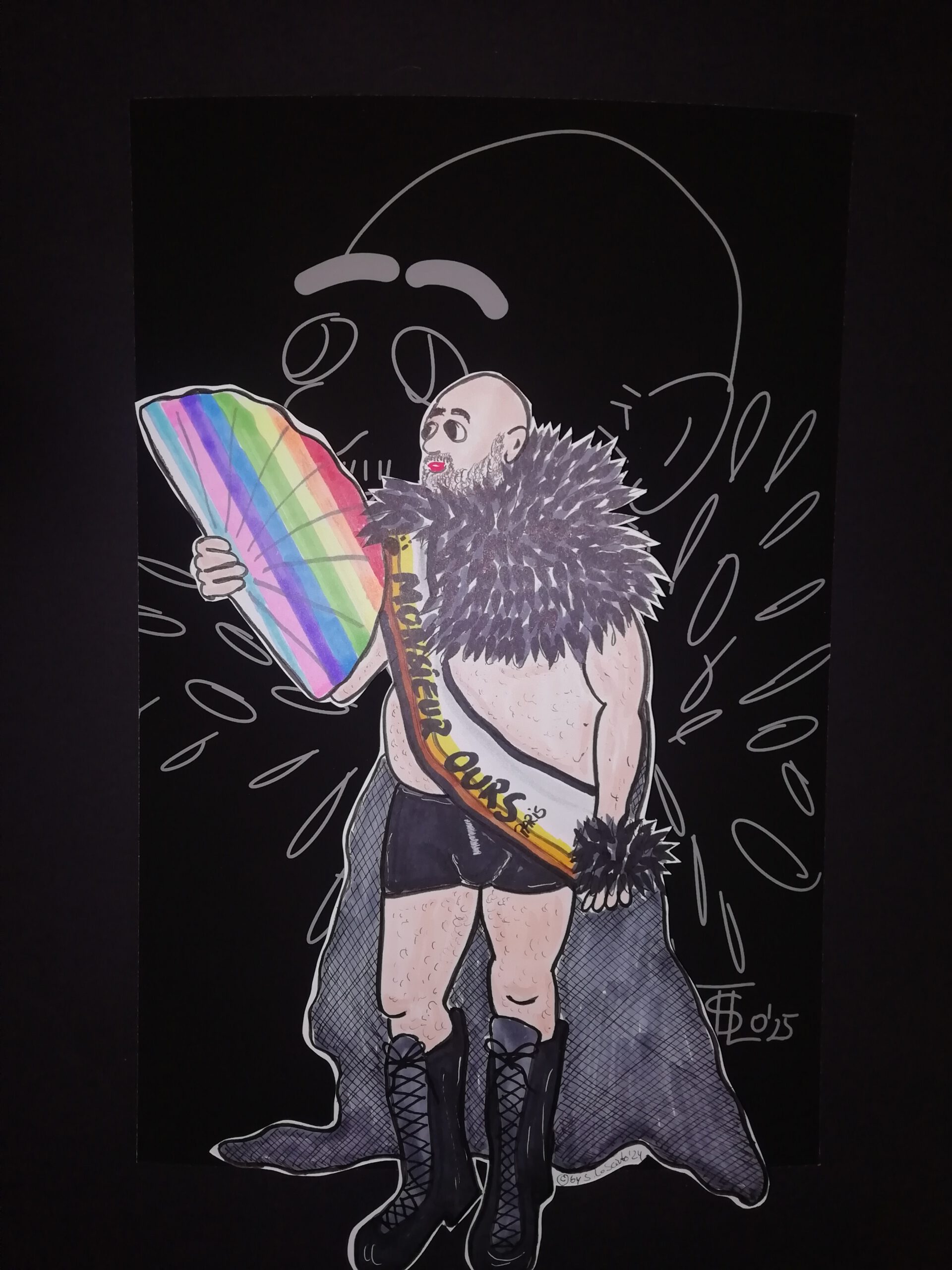 Verkauft von: Stefan Lo SciutoM.Ours, Unikat in 3D Optik. Copicmarker auf Papier ,gerahmt in schwarzem Holzrahmen mit schwarzem Passepartout.