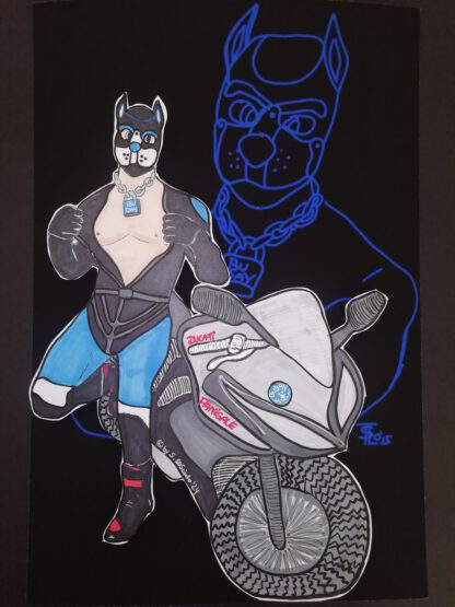 Verkauft von: Stefan Lo SciutoPuppy, Unikat in 3D Optik. Copicmarker auf Papier ,gerahmt in schwarzem Holzrahmen mit schwarzem Passepartout.