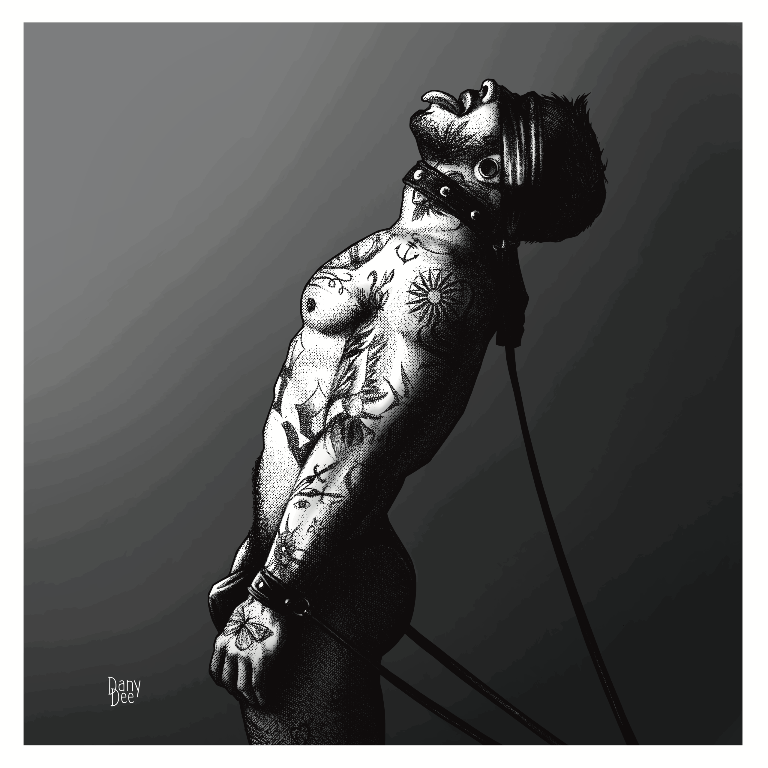 The Control is a part of the second mini set of drawings inspired by the Fetish Pride. It is originally digital and is made using three different working techniques that are similar to work with pencil, pen, ink and water ink.